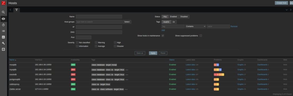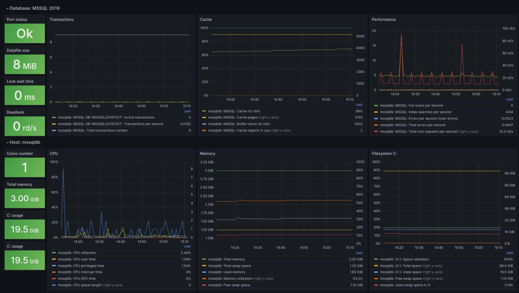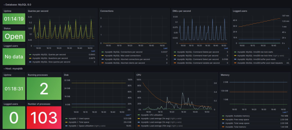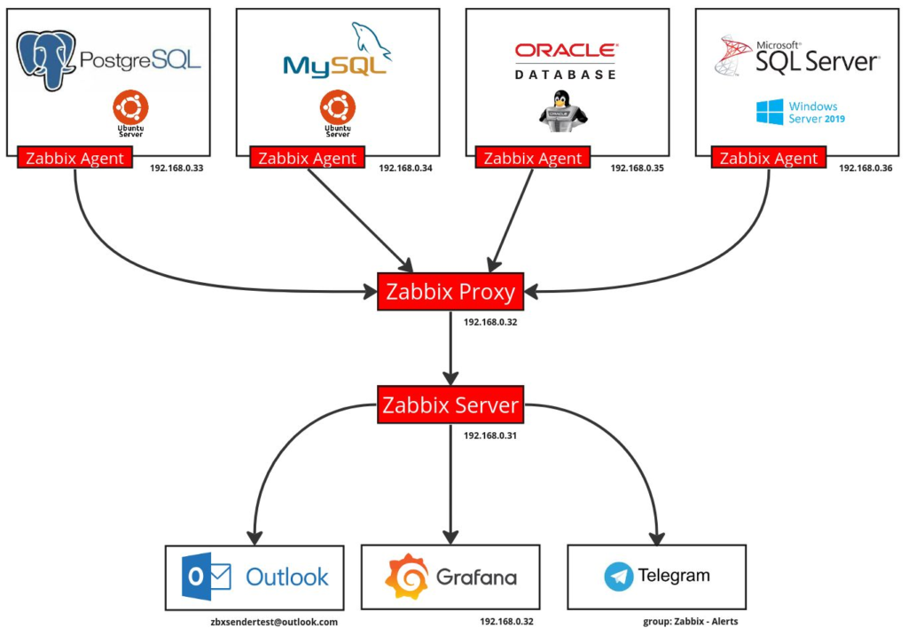 Em laboratório próprio, virtualizei algumas máquinas, dispondo de sistemas baseados em Windows (Windows Server 2019) e em Unix/Linux (Oracle Linux 7.9 e Ubuntu Server 22.04), de alguns dos SGBDs relacionais mais utilizados no mercado (Oracle 21c, PostgreSQL 14.7, MySQL 8.0 e SQL Server 2019) e de softwares para monitoração (Zabbix 6.0 e Grafana 9.5.2).